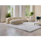 Vente Unique Grand canapé d'angle panoramique en tissu texturé beige POGNI de Maison Céphy