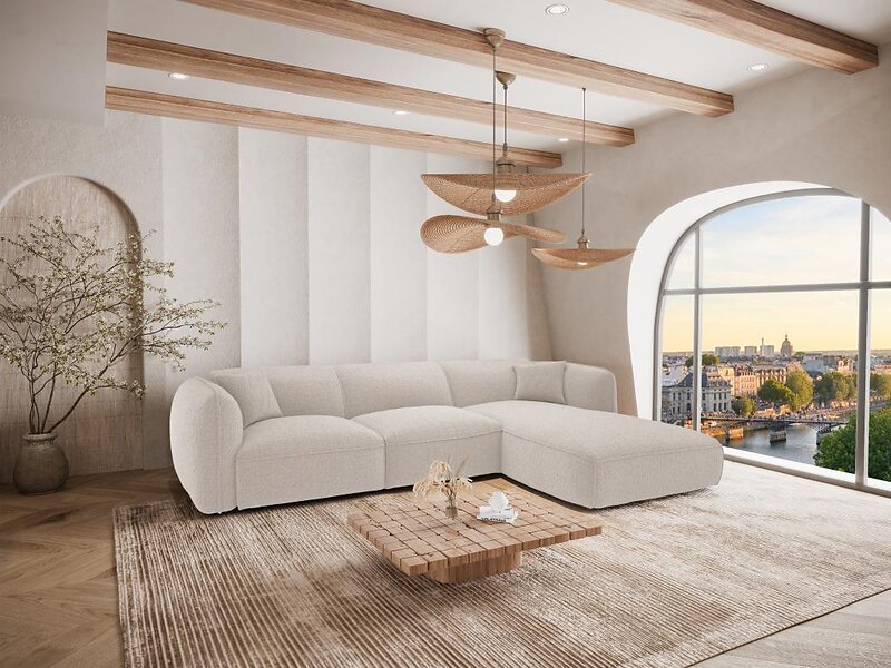 Vente Unique Canapé d'angle droit en tissu beige CAMILIO Maison de Céphy
