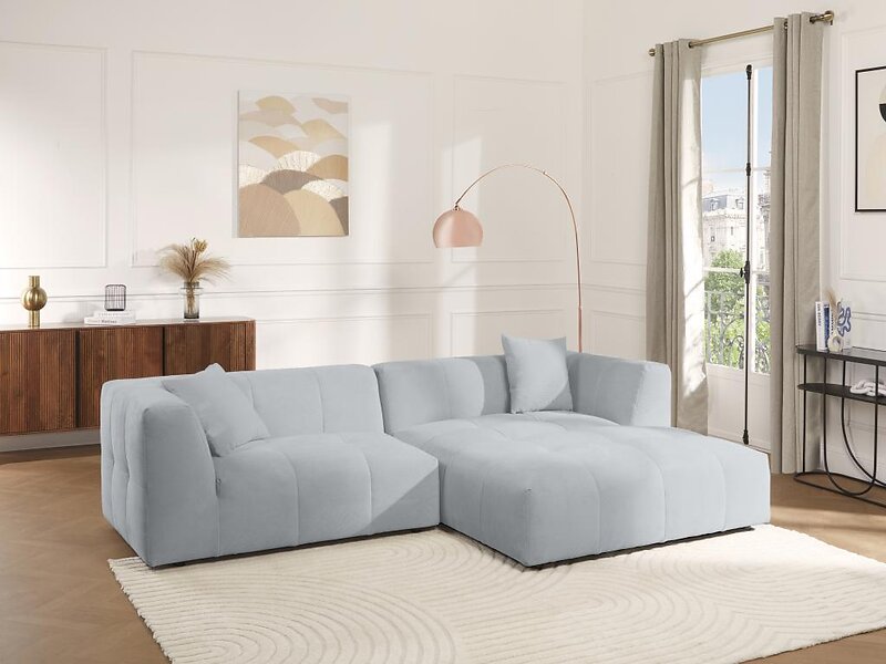Vente Unique Canapé d'angle droit en velours côtelé gris clair NAEMIA Maison de Céphy