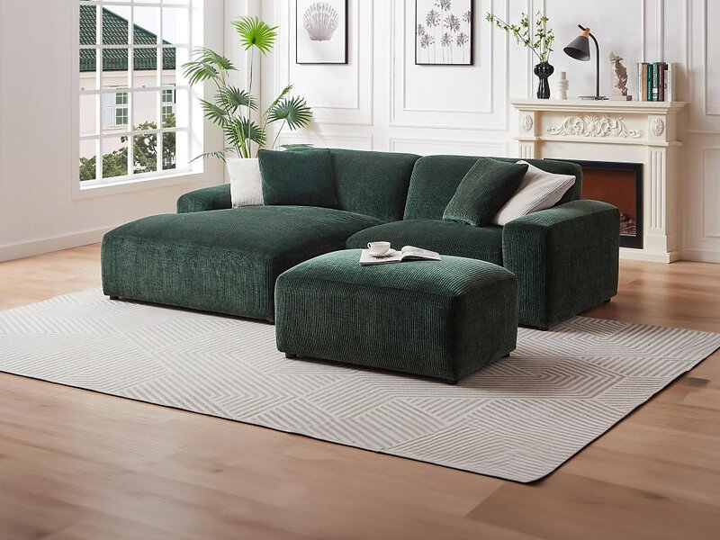 Vente Unique Canapé d'angle gauche en velours côtelé vert sapin TIRONO Maison de Céphy