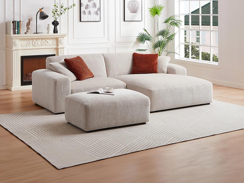 Vente Unique Canapé d'angle droit en velours côtelé beige TIRONO Maison de Céphy