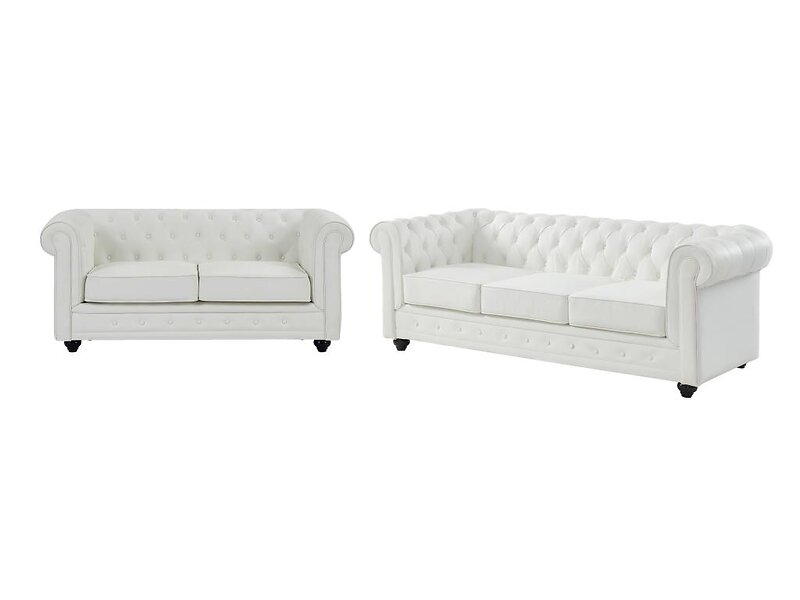 Vente Unique Canapés 3 places et 2 places en simili blanc CHESTERFIELD