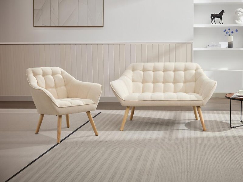 Vente Unique Canapé 2 places et fauteuil en tissu beige CASERTA