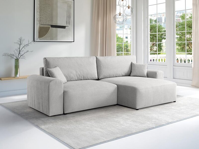 Vente Unique Canapé d'angle convertible et réversible en tissu gris clair ILANOR