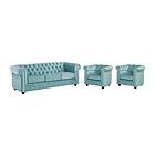 Vente Unique Canapé 3 places et 2 fauteuils CHESTERFIELD Velours bleu pastel