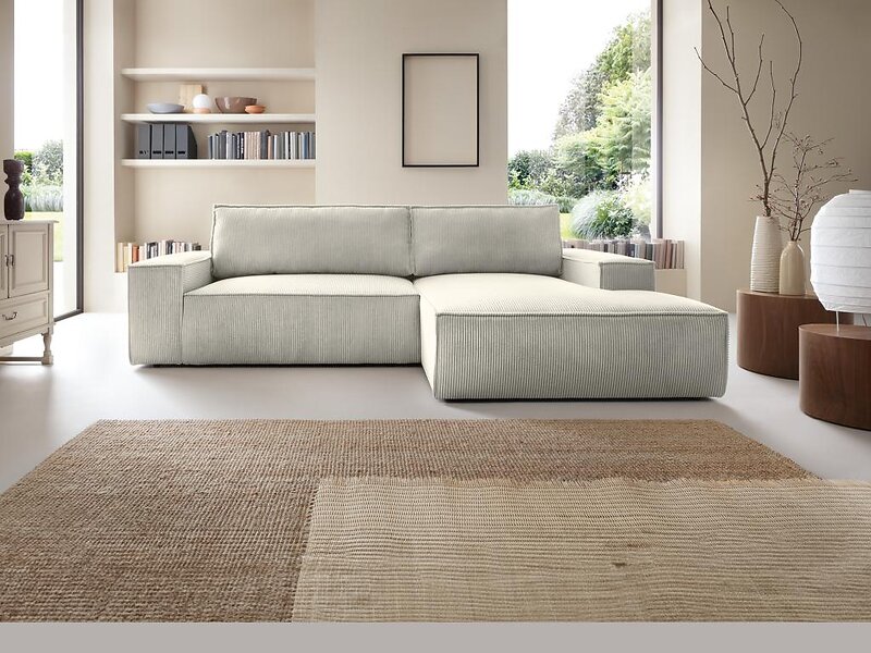 Vente Unique Canapé d'angle droit convertible en velours côtelé beige AMELIA