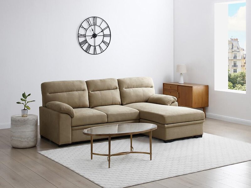 Vente Unique Canapé d'angle droit convertible en tissu beige ULENIO