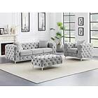Vente Unique Canapé 3 places, fauteuil et pouf chesterfield en velours gris clair EDWINA