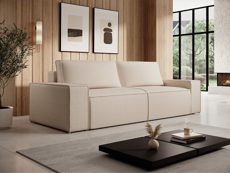 Vente Unique Canapé 4 places convertible en tissu texturé beige AMELIA