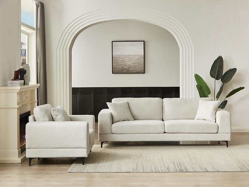 Vente Unique Canapé 3 places et fauteuil en tissu texturé beige JAMOLO