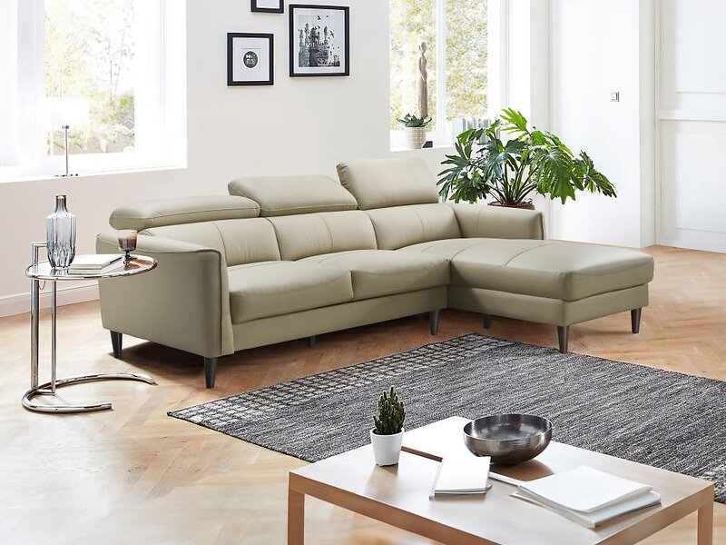 Vente Unique Canapé d'angle droit en cuir de buffle beige SALVI