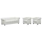 Vente Unique Canapé 3 places et 2 fauteuils CHESTERFIELD Simili Blanc