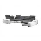 Vente Unique Canapé d'angle panoramique convertible en tissu et simili BOILEAU Bicolore Gris/Blanc Angle droit