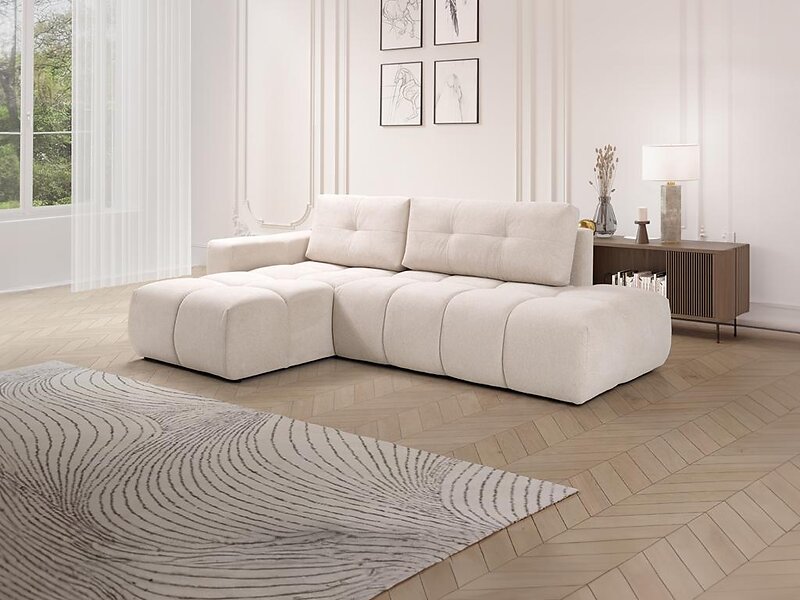 Vente Unique Canapé d'angle gauche convertible en tissu texturé beige TRIMALDI