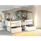 Vente Unique Lit cabane SAROSI avec tiroirs 90 x 190 cm Tilleul Blanc et chêne