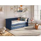 Vente Unique Lit banquette gigogne capitonné LOUISE 2x90x190cm tissu bleu