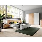 Vente Unique Lit coffre avec chevets 160 x 200 cm 2 tiroirs Avec LEDs Coloris : Blanc et naturel FRANCOLI