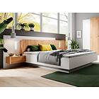 Vente Unique Lit coffre avec chevets 160 x 200 cm 2 tiroirs Avec LEDs Coloris : Blanc et naturel Matelas FRANCOLI