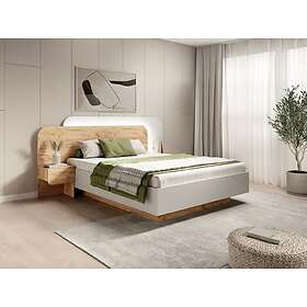 Vente Unique Lit coffre avec chevets 160 x 200 cm Avec LEDs Coloris : Naturel et blanc Matelas DESADO