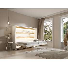 Vente Unique Lit escamotable 140 x 200 cm Ouverture horizontale manuelle Avec LEDs Blanc et naturel RAPILI