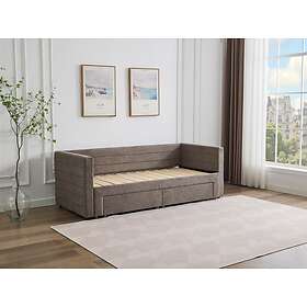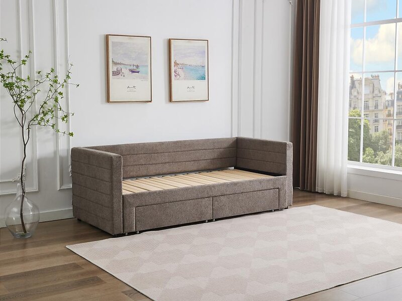 Vente Unique Lit gigogne 2 x 80 x 200 cm Avec sommier peigne et tiroirs Tissu texturé Taupe Matelas CAMITY