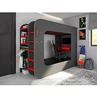 Vente Unique Lit mezzanine gamer 90 x 200 cm Avec bureau et rangements Avec LEDs Anthracite et rouge WARRIOR