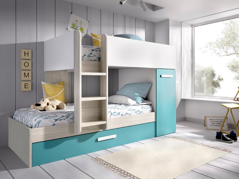 Le meilleur prix pour Vente Unique Lits superposés avec tiroir lit gigogne et rangements 3 x 90 x 190 cm Blanc, naturel et bleu ANTHONY est actuellement de 549,99 €. leDénicheur compare les promos et les offres de 4 marchands en ligne.