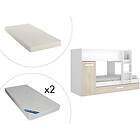 Vente Unique Lits superposés avec tiroir lit gigogne et rangements 3 x 90 x 190 cm Blanc et Naturel matelas ANTHONY