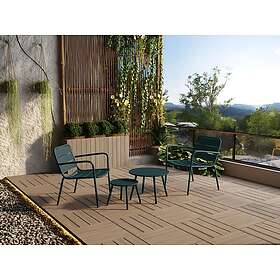 Mylia MIRMANDE Salon de jardin en métal 2 fauteuils bas empilables et tables gigognes Vert sapin