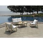 Mylia TULUM Salon de jardin en teck : un canapé 2 places, 2 fauteuils et une table basse rectangulaire Naturel clair et blanc