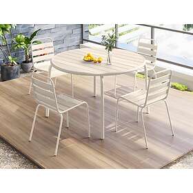 Le meilleur prix pour Mylia MIRMANDE Salle à manger de jardin en métal une table D.110 cm et 4 chaises empilables Beige est actuellement de 309,99 €. leDénicheur compare les promos et les offres de marchands en ligne.