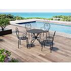 Mylia GUERMANTES Salle à manger de jardin en métal façon fer forgé : une table et 4 fauteuils empilables Anthracite