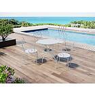 Mylia GUERMANTES Salle à manger de jardin en métal façon fer forgé : une table et 4 fauteuils empilables blancs