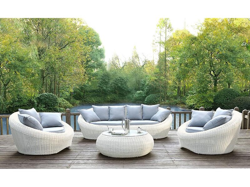 Mylia WHITEHEAVEN Salon de jardin en résine tressée ivoire : canapé, 2 fauteuils et table basse