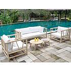 Mylia TULUM Salon de jardin en teck : un canapé 3 places 2 fauteuils 2 tables basses Naturel clair et blanc