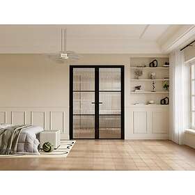 Vente Unique Bloc porte réversible à deux battants en aluminium et verre texturé 2 x H204 x L83 cm Noir MASERU
