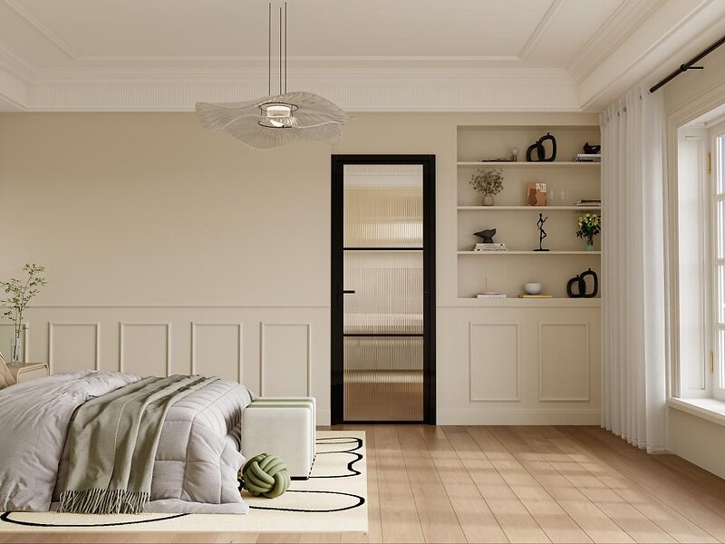 Vente Unique Bloc porte réversible en aluminium et verre texturé H204 x L83 cm Noir MASERU