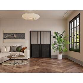 Vente Unique Bloc porte réversible à deux battants en aluminium et verre trempé style atelier 2 x H204 x L83 cm Noir ERMELO