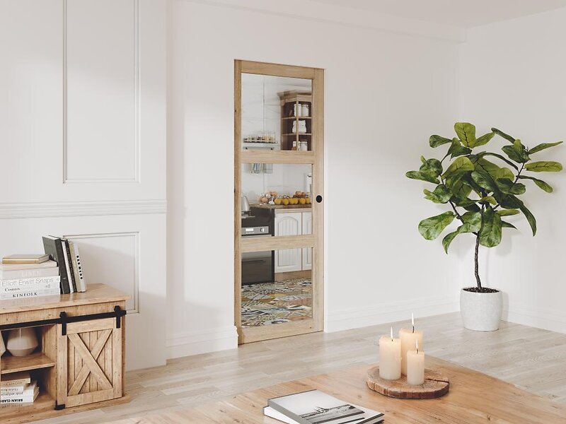 Vente Unique Porte coulissante avec système à galandage en bois et verre trempé 3 fenêtres H205 x L63 cm ACOSTA II