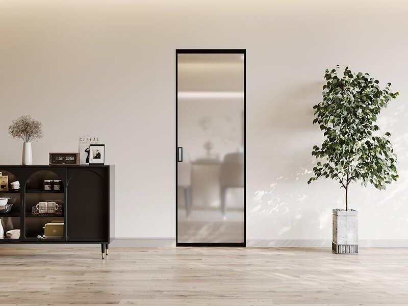 Vente Unique Porte coulissante avec système à galandage aluminium et verre trempé dépoli H205 x L93 cm LINCI II