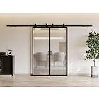 Vente Unique Porte coulissante double avec système en applique aluminium et verre trempé dépoli 2 x H205 x L63 cm LINCI II