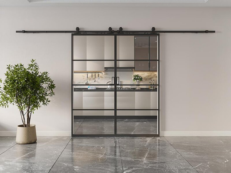 Vente Unique Porte coulissante double avec système en applique aluminium et verre trempé transparent 2 x H205 x L63 cm SINCA II