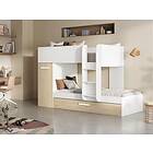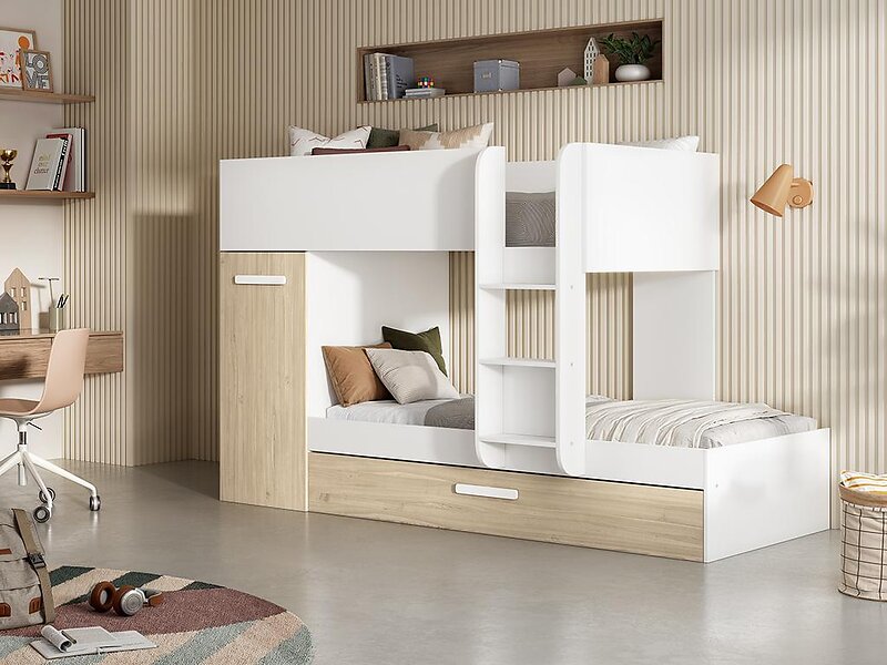 Vente Unique Lits superposés avec tiroir lit gigogne et rangements 3 x 90 x 190 cm Blanc et Naturel ANTHONY