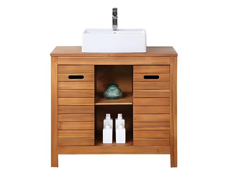 Vente Unique Meuble de salle de bain en bois d'acacia avec simple vasque 90 cm PULUKAN