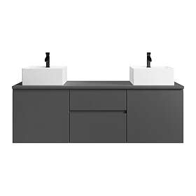 Vente Unique Meuble de salle de bain suspendu avec double vasque Gris 150 cm JIMENA II