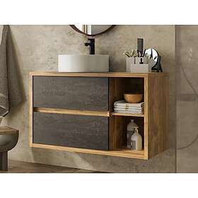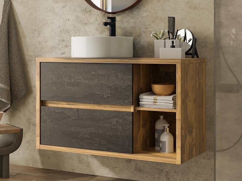 Vente Unique Meuble de salle de bain suspendu avec vasque ronde Coloris naturel et anthracite 100 cm TIKITIKI