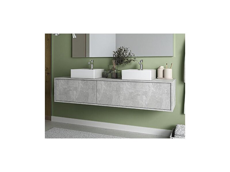 Vente Unique Meuble de salle de bain suspendu gris béton avec double vasque L150 cm ISAURE II