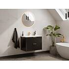 Vente Unique Meuble de salle de bain suspendu strié avec vasque à encastrer Noir 80 cm ZEVARA