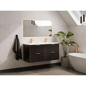 Vente Unique Meuble de salle de bain suspendu strié avec vasque à encastrer Noir 120 cm ZEVARA