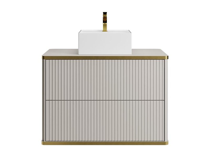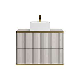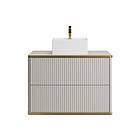 Vente Unique Meuble de salle de bain suspendu strié liseré doré avec vasque à poser carrée Beige 80 cm KELIZA